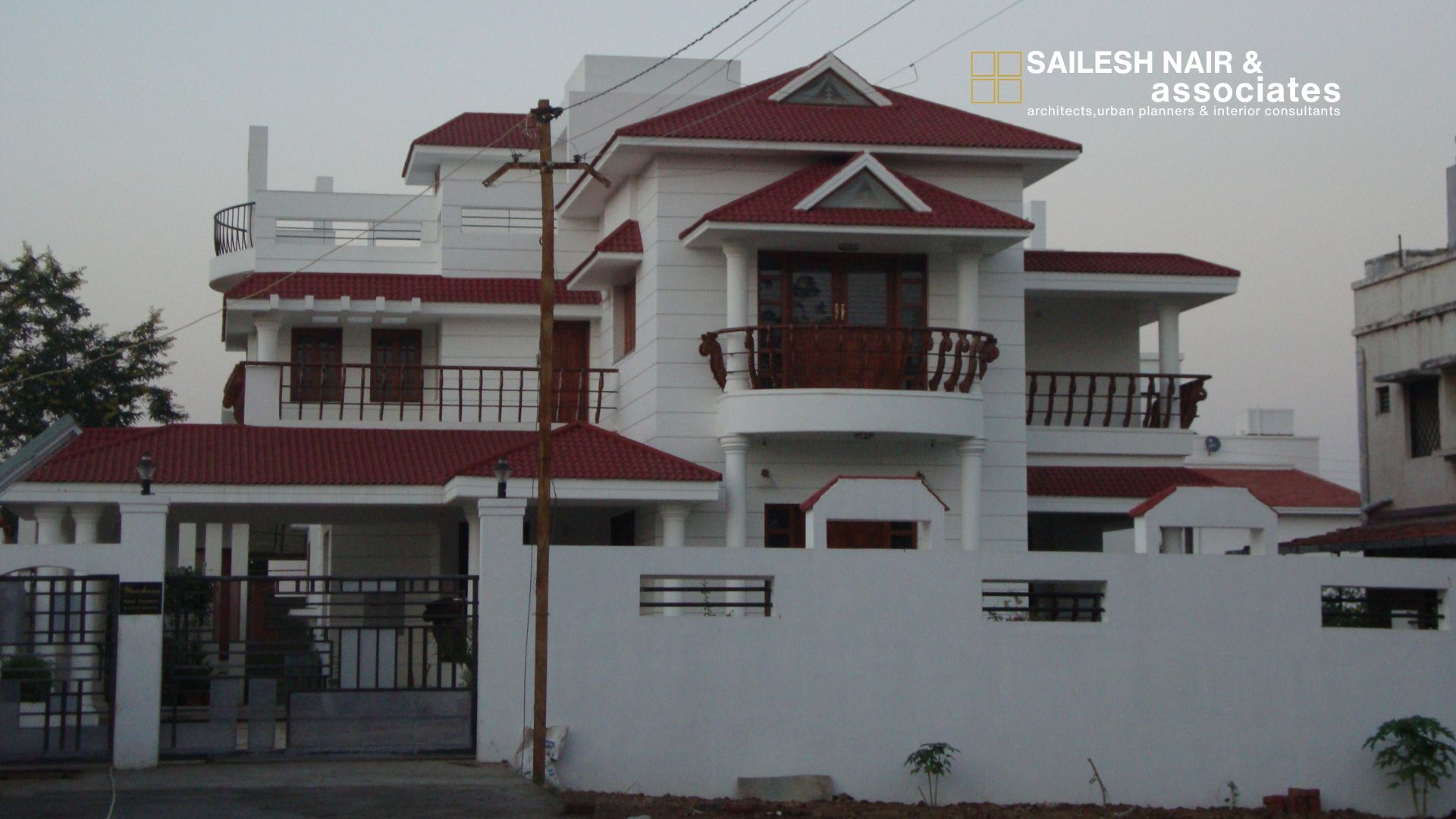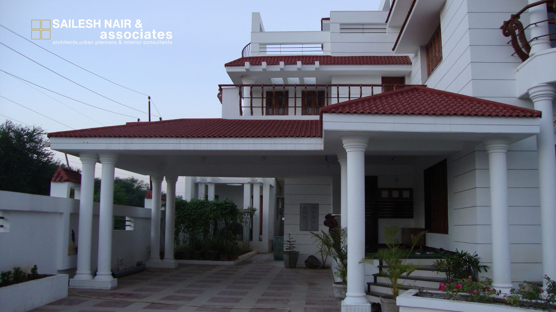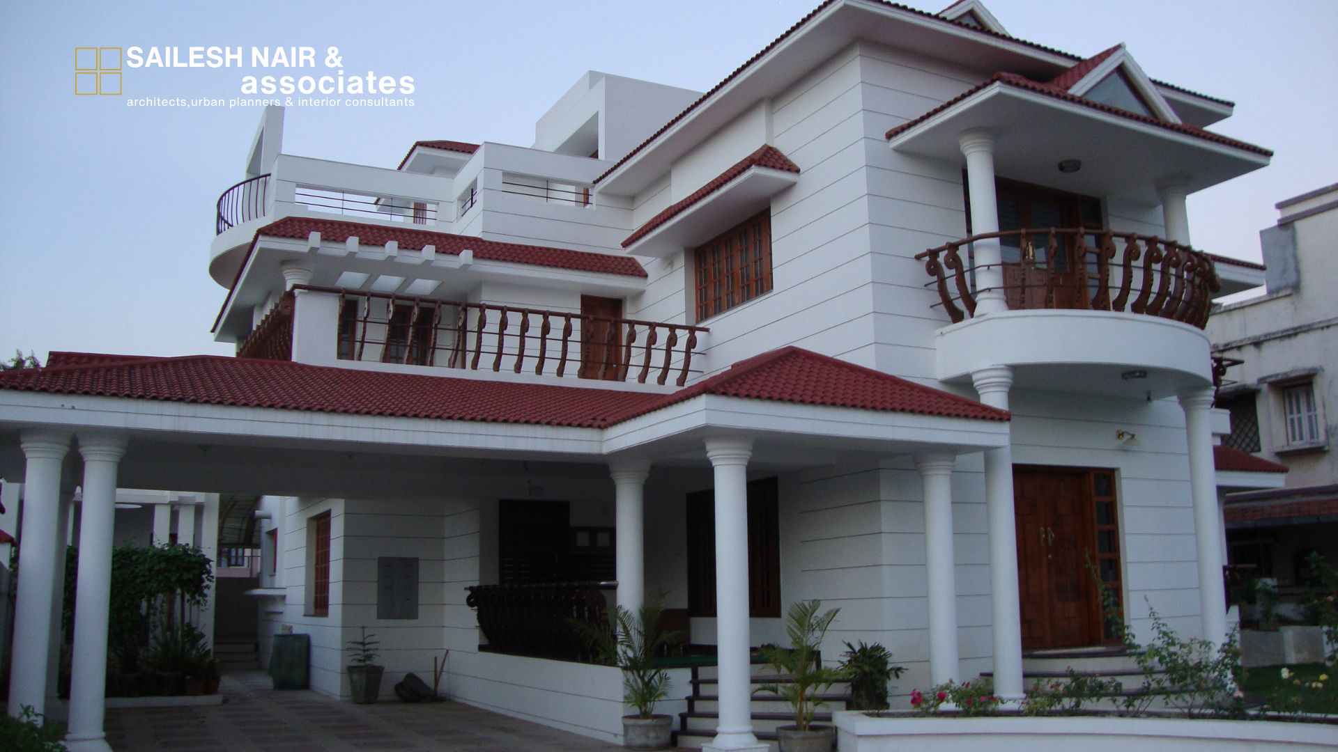 This elegant residential project by Sailesh Nair & Associates beautifully blends traditional charm with modern architectural sensibilities, creating a home that is both timeless and functional. The striking red-tiled sloping roofs lend a classic character to the structure, while their layered arrangement enhances the visual depth and proportion of the façade. The design incorporates spacious balconies with wooden railings that not only add warmth and richness to the exterior but also encourage seamless indoor-outdoor living. Clean white walls contrast gracefully with the earthy tones of wood and roofing, achieving a crisp yet inviting aesthetic. Thoughtfully planned terraces and wide openings allow for natural light and ventilation, fostering a healthy and comfortable living environment. The symmetry and rhythm in the overall composition highlight the architectural balance, making this residence a true showcase of refined design. This project reflects the firm’s commitment to crafting homes that harmonize beauty, functionality, and enduring appeal.