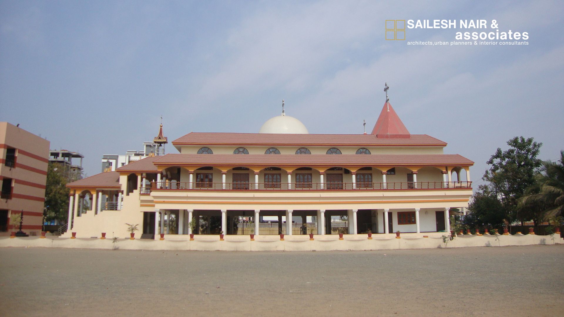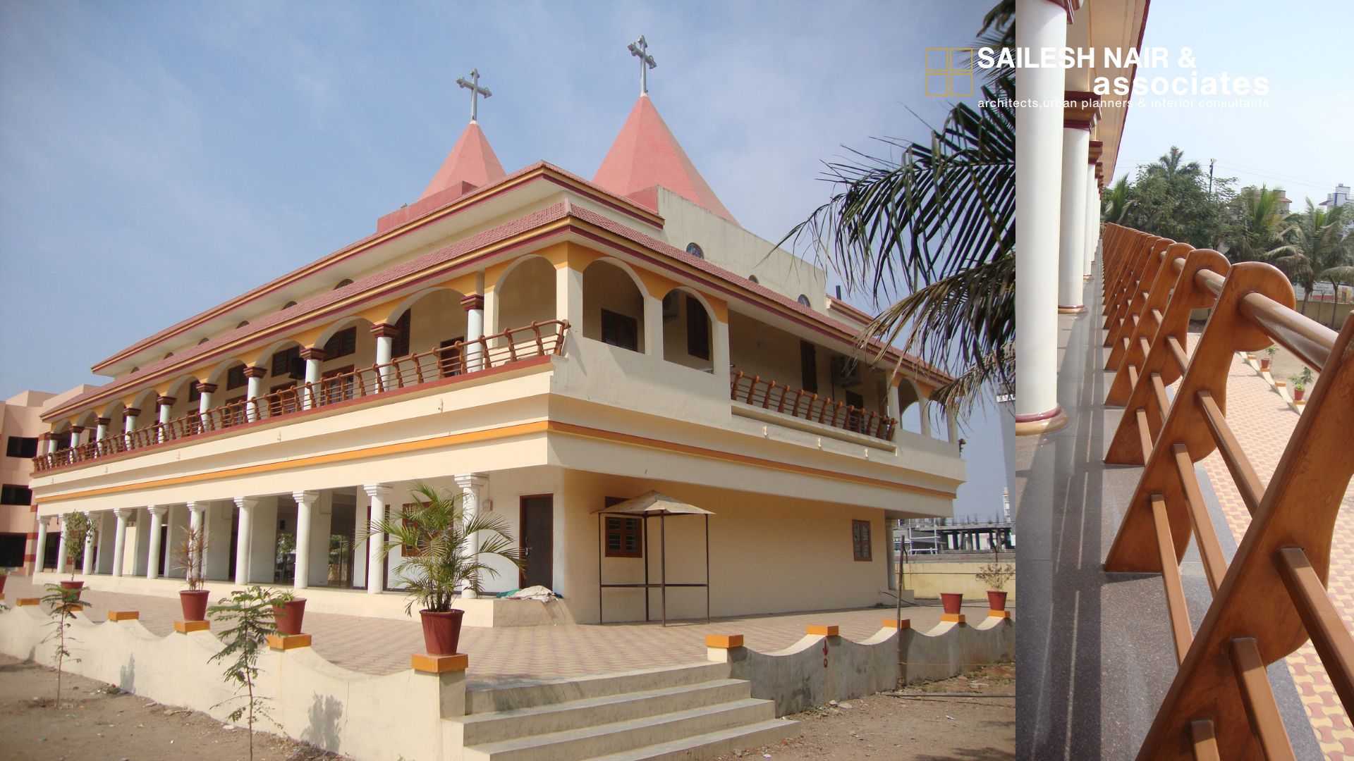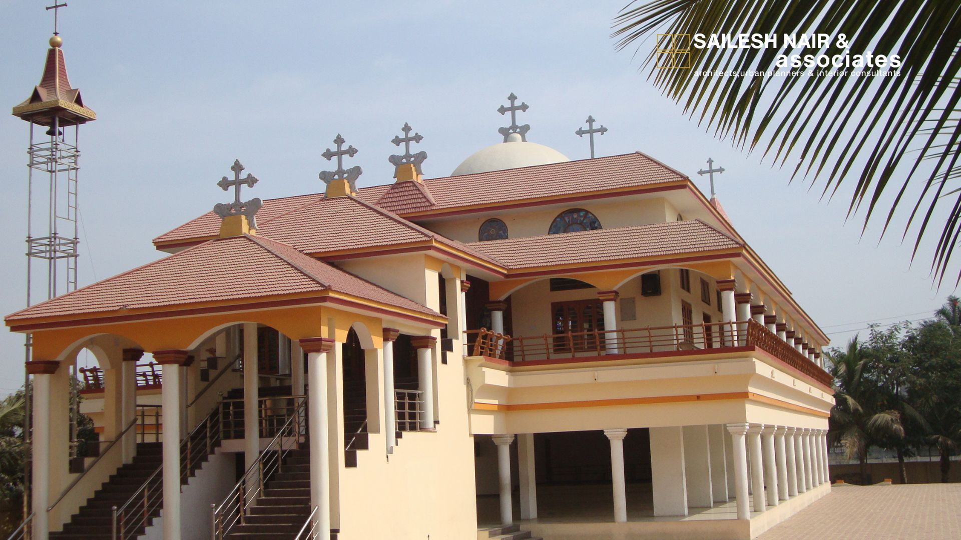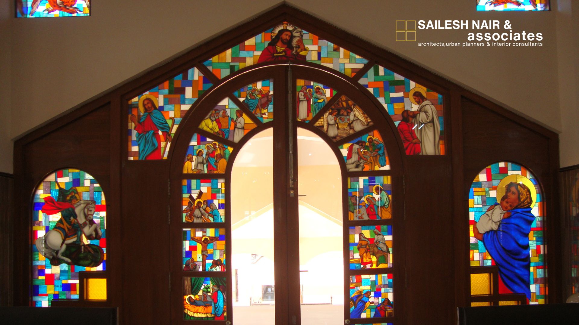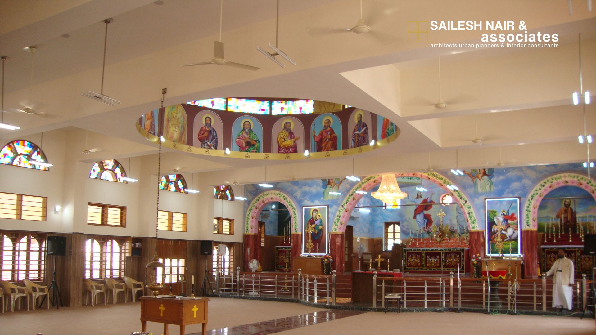 This interior architecture project by Sailesh Nair & Associates beautifully captures the spiritual essence of a sacred space, blending traditional religious artistry with contemporary spatial planning. The expansive hall is crowned by a majestic dome adorned with vibrant iconography and stained-glass windows, filling the interior with a kaleidoscope of light and color that elevates the atmosphere into one of reverence and serenity. The use of arched windows, wooden paneling, and intricately detailed stained-glass doors reinforces the spiritual character, while the circular arrangement of the dome symbolizes unity and divinity. Functional elements such as ample seating, natural ventilation, and thoughtfully designed lighting ensure comfort without compromising the sanctity of the environment. The design harmoniously integrates symbolism, artistry, and functionality, creating an inspiring space that serves both as a place of worship and as an architectural landmark that resonates with cultural and spiritual identity.