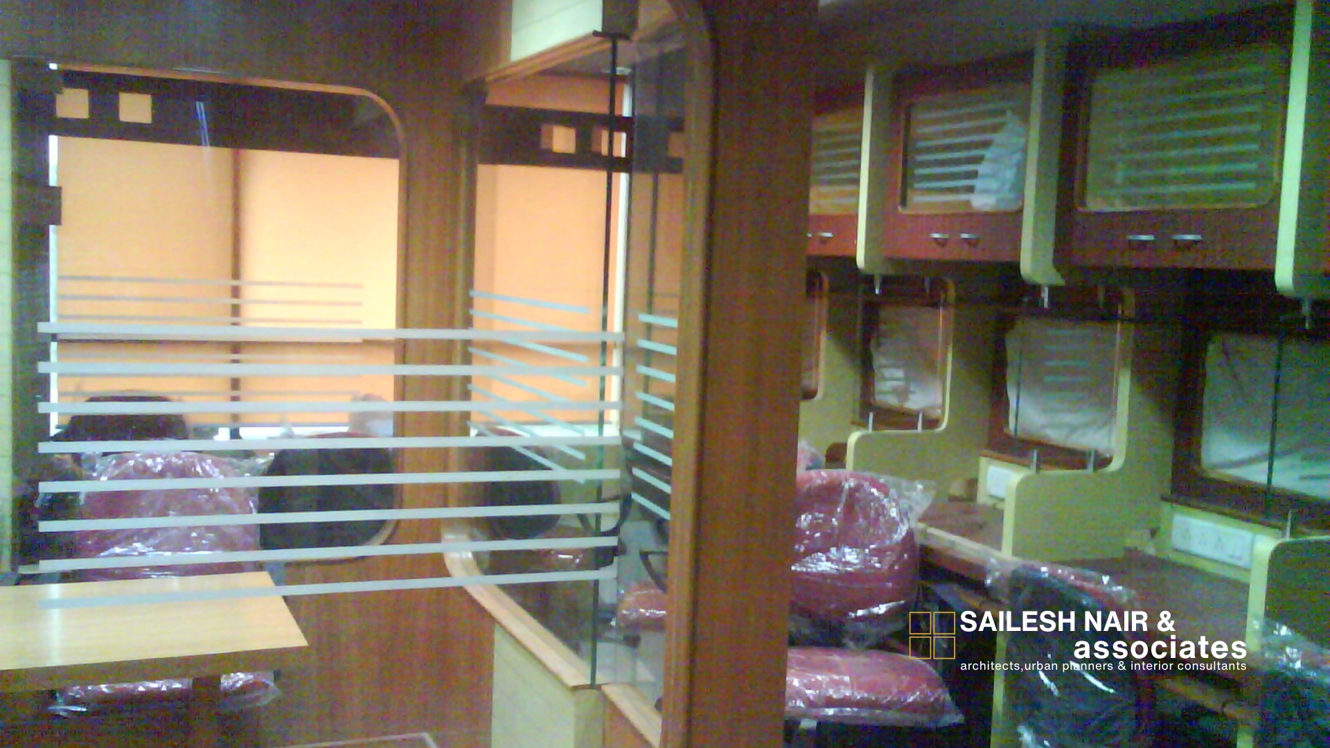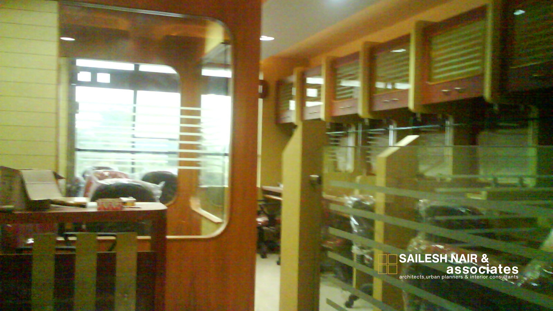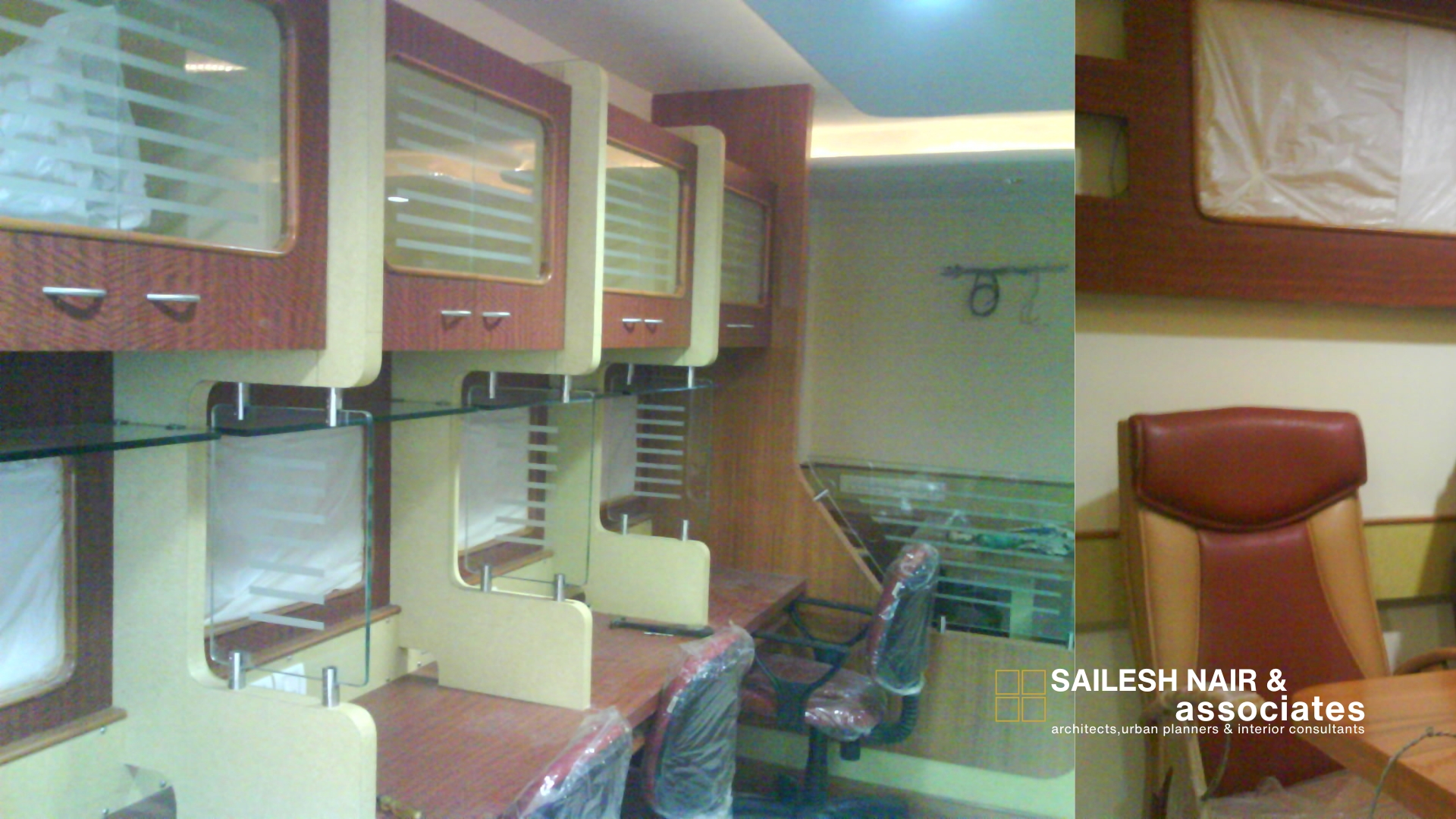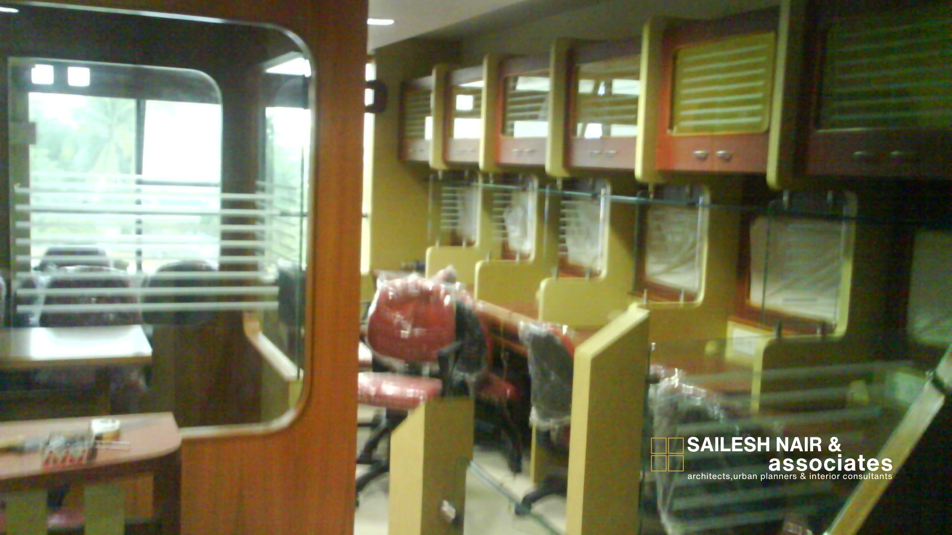 This interior design project by Sailesh Nair and Associate focuses on creating a compact yet highly functional office environment, where space is optimized through smart partitioning and efficient furniture layouts. The design incorporates modular workstations with glass dividers that provide a sense of openness while maintaining privacy for individual users. Overhead storage units in contrasting colors enhance practicality, ensuring ample organization and accessibility without cluttering the space. The use of warm tones combined with sleek glass elements strikes a balance between professionalism and visual appeal, while ergonomic seating ensures comfort for extended work hours. Natural light filters through strategically placed windows, complementing the artificial lighting to create a bright, focused atmosphere. This project reflects a thoughtful approach to modern workspace design, emphasizing efficiency, comfort, and aesthetic coherence in a limited footprint.