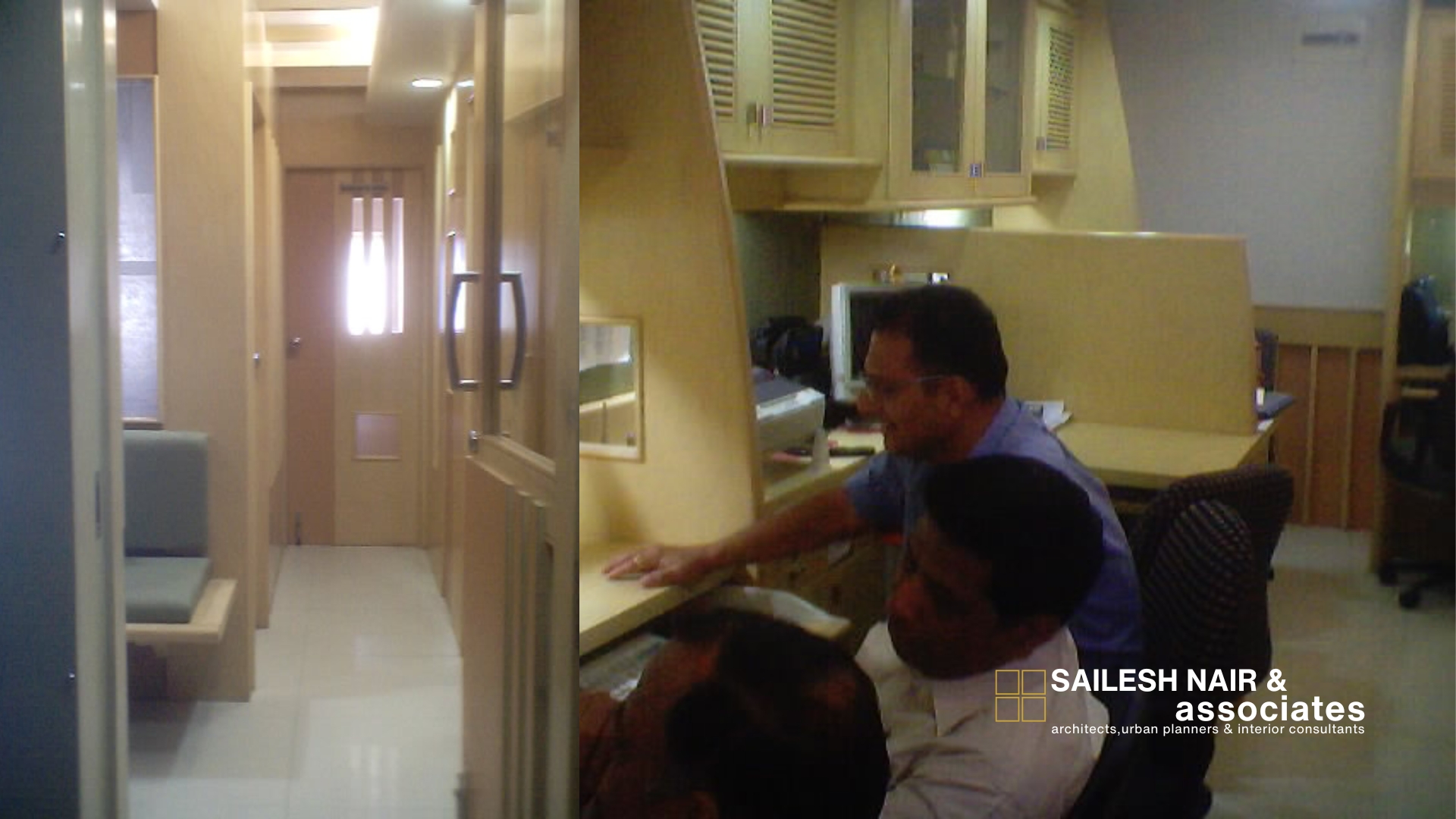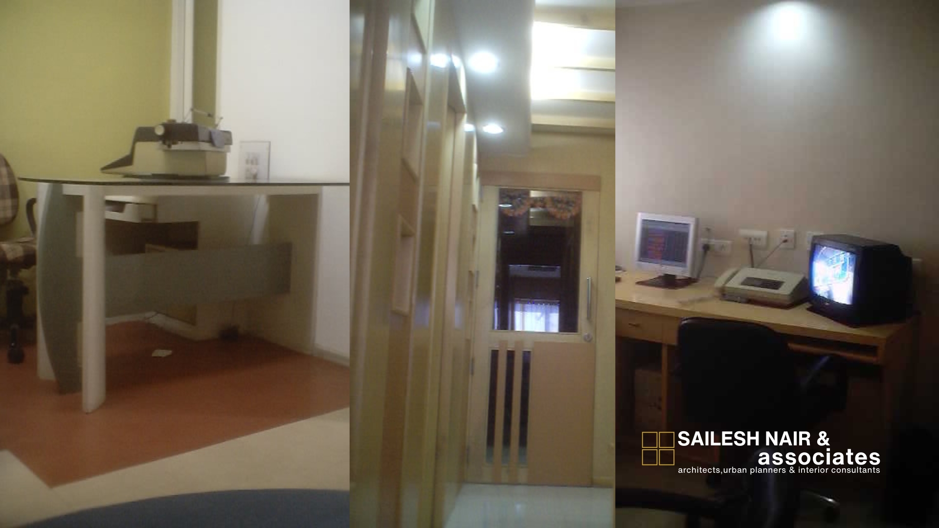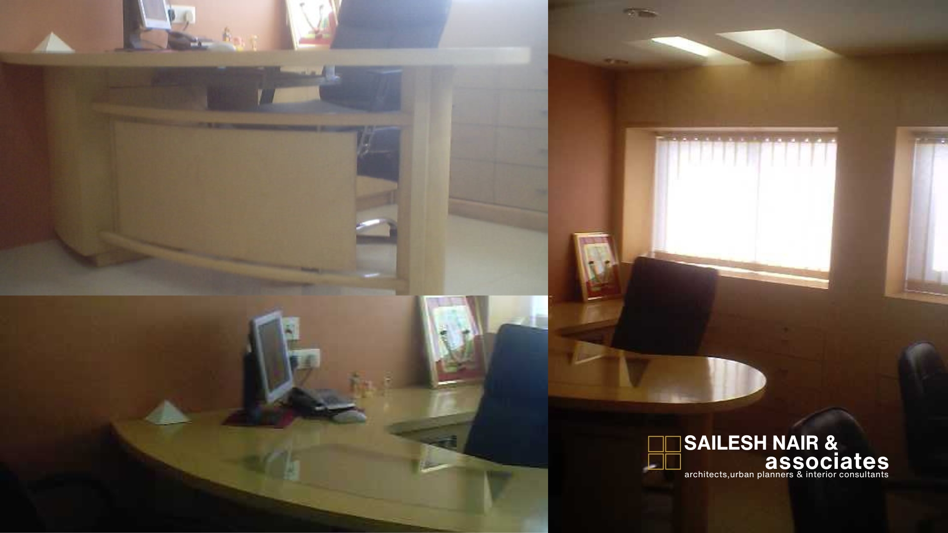 This office interior project by Sailesh Nair and Associate is designed to optimize functionality within a compact space while maintaining a warm and professional ambiance. The layout features custom-built workstations with ample storage through overhead cabinets and integrated shelving, ensuring an organized and efficient workspace. The use of light-toned wood finishes across furniture, cabinetry, and wall detailing creates a cohesive and welcoming environment, while subtle ceiling design elements add depth and sophistication. Carefully planned niches and display areas provide opportunities for personalization and visual interest, balancing practicality with aesthetic appeal. The design emphasizes clarity, accessibility, and comfort, making the office both highly productive and visually harmonious—a thoughtful blend of efficiency and understated elegance